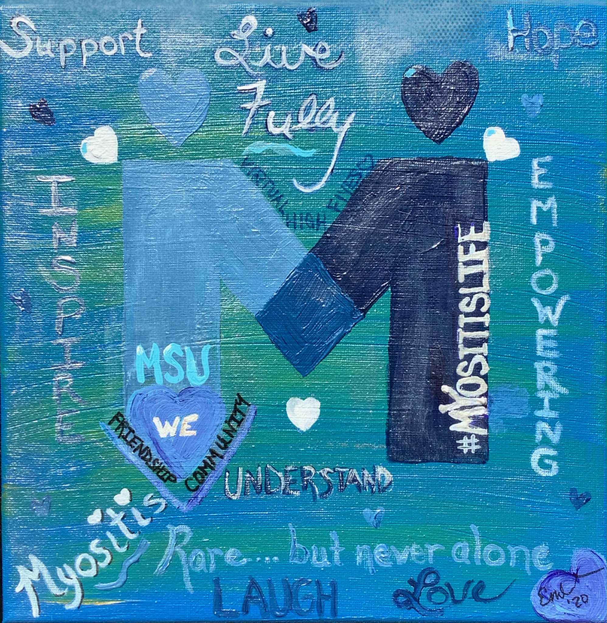 The MSU logo-inspired image was created by Emily Filmore, a founding director of MSUand Board Member Emeritus. Per Emily: “MSU Has my permission to use the image of my MSU logo-inspired painting with credit to me, without restraint. This includes but is not limited to website, promotional items, and sales”