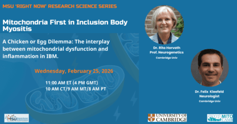 + Mitochondria First in Inclusion Body Myositis: A Chicken or Egg dilemma – The interplay between mitochondrial dysfunction and inflammation in IBM Lynn Wilson, February 5, 2026March 3, 2026